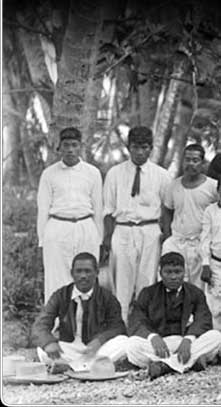 These young men are members of a church group on Ebon. They gathered in 1907 to celebrate the 50th anniversary of the founding of the church on Ebon.