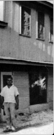 Some enterprising individuals like Pedro Lifoifoi, shown here standing in front of his store in Tanapag in 1944, set up small businesses. For a short time, this was the place to shop in the northern part of Saipan.