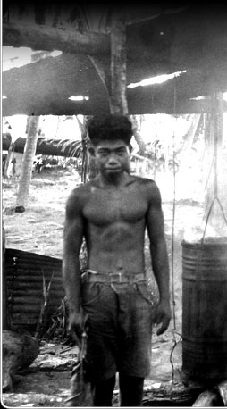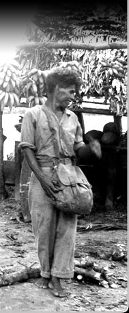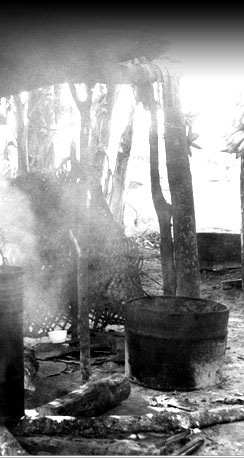 Even salt was difficult to find on some islands. These men on Kosrae are evaporating saltwater over a fire to make their own salt. The man at the right is Jonah, a Marshallese mission teacher from Aur.