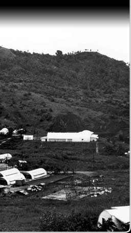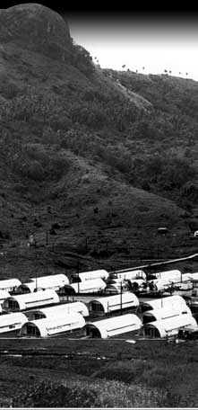 During the final years of naval administration, the headquarters was located in Chuuk. These quonset huts, shown here in 1950, might have become the seat of government for the Trust Territory. Instead, when the capital was relocated on Guam, they were turned into classrooms for Pacific Islands Central School (PICS).