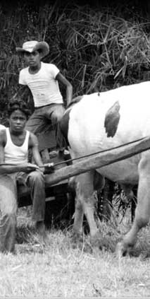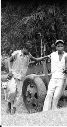 On islands without roads people had to make do with other forms of transportation. This carabao cart was the usual mode of land travel in Babeldaob in the mid-1950s.