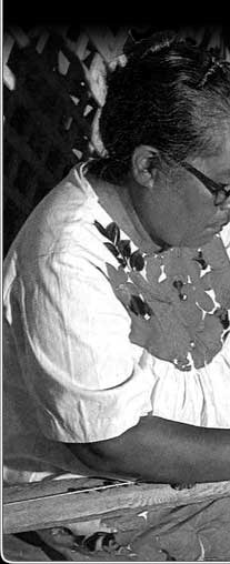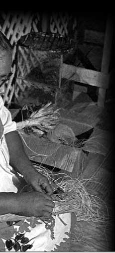 Micronesian women have always been entrusted with special kinds of work. Their work, which was traditionally very different from men's work, often depends on special skills that they are taught while young. Here a woman from the Marshalls concentrates on her braiding.