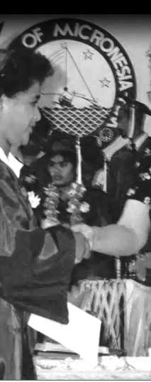 A Chuukese young woman receives her diploma from former College of Micronesia-FSM President Susan Moses. Today, as many Micronesian girls as boys attend high school and college.
