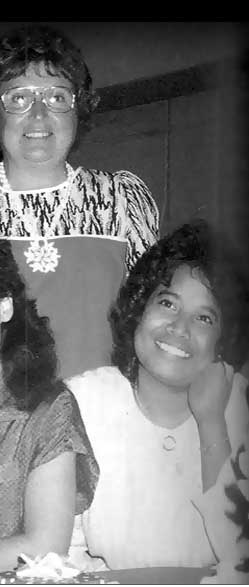 Women's role in politics may not be much larger than it was twenty years ago, but their professional involvement certainly is. Here are two professional educators, Hilda Heine and Kalise Korok, with their mentor, Emilie Power.