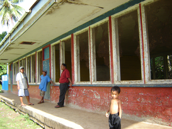 Etten Elementary School is located on private land, the roof is tin and in fair condition, but the ceiling is poor. The windows and security screens are damaged, and the water and toilet systems are very poor. The furniture are in poor condition, no textbooks for the children and the teachers' attendance is poor.