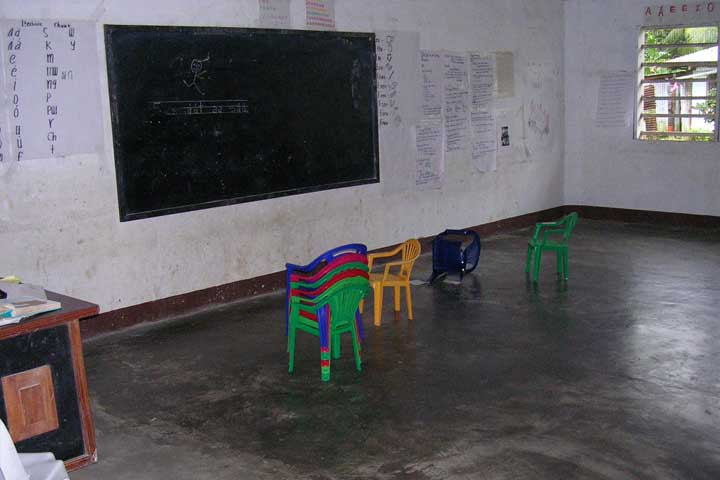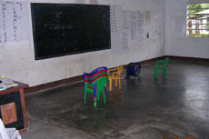 (land still owned by landlord): Exterior: needs expansion of building, painting, water system and toilet. Interior: needs furniture and textbooks.