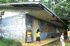 Sapou Elementary School *(land still owned by landlord): Exterior: two-storey building. Second floor needs major repair as it's deteriorating and becoming unsafe for children. First floor needs to be repainted. Water system and toilet. No interior shots taken as windows were boarded, however, furniture are also needed as well as textbooks.