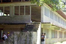 UFO Elementary School (land still owned by landlord). Exterior: needs windows, doors and screens to be replaced; needs painting. Needs water system and toilet. Interior: needs repainting, furniture and textbooks.