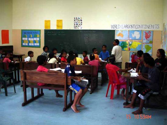 Laura Elementary School - Laura, Majuro. Land is leased by th gov't. Exterior - Two storey & one storey bldgs good but undergoing renovation process; good water and toilet systems. Interior - good furniture and textbooks; and teachers' attendance is good.
