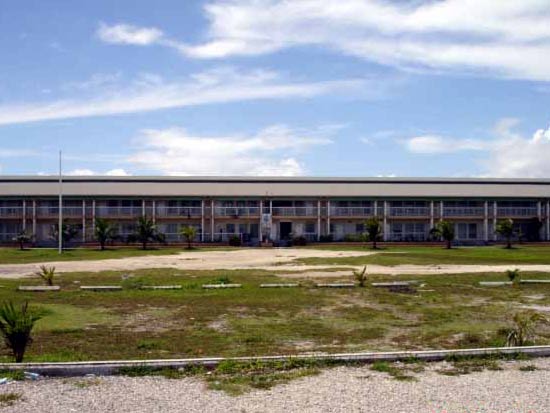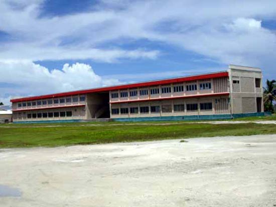 Majuro Middle Elementary School - Land is leased by gov't. Exterior - Two storey bldgs in excellent condition; good water and toilet systems. Interior - (no photo available, however, MOE personnel advised us they have furniture and textbooks); teachers' attendance is good.