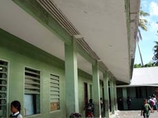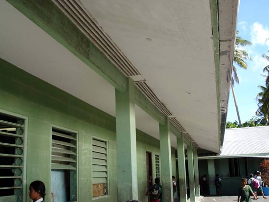 Uliga Elementary School - Uliga, Majuro. Land is leased by the gov't. Exterior -One storey bldgs with tin roofs; some windows need repair; good water and toilet systems. Interior -some furniture available but not strong and durable; textbooks available, and teachers' attendance is good.