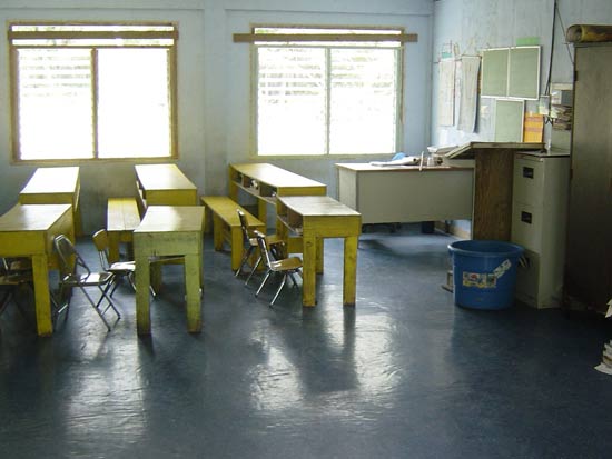 - Woja, Majuro. Land is leased by gov't. Exterior - One storey bldg with good tin roofs; good water and toilet systems. Interior - good furniture and textbooks; teachers' attendance is good.
